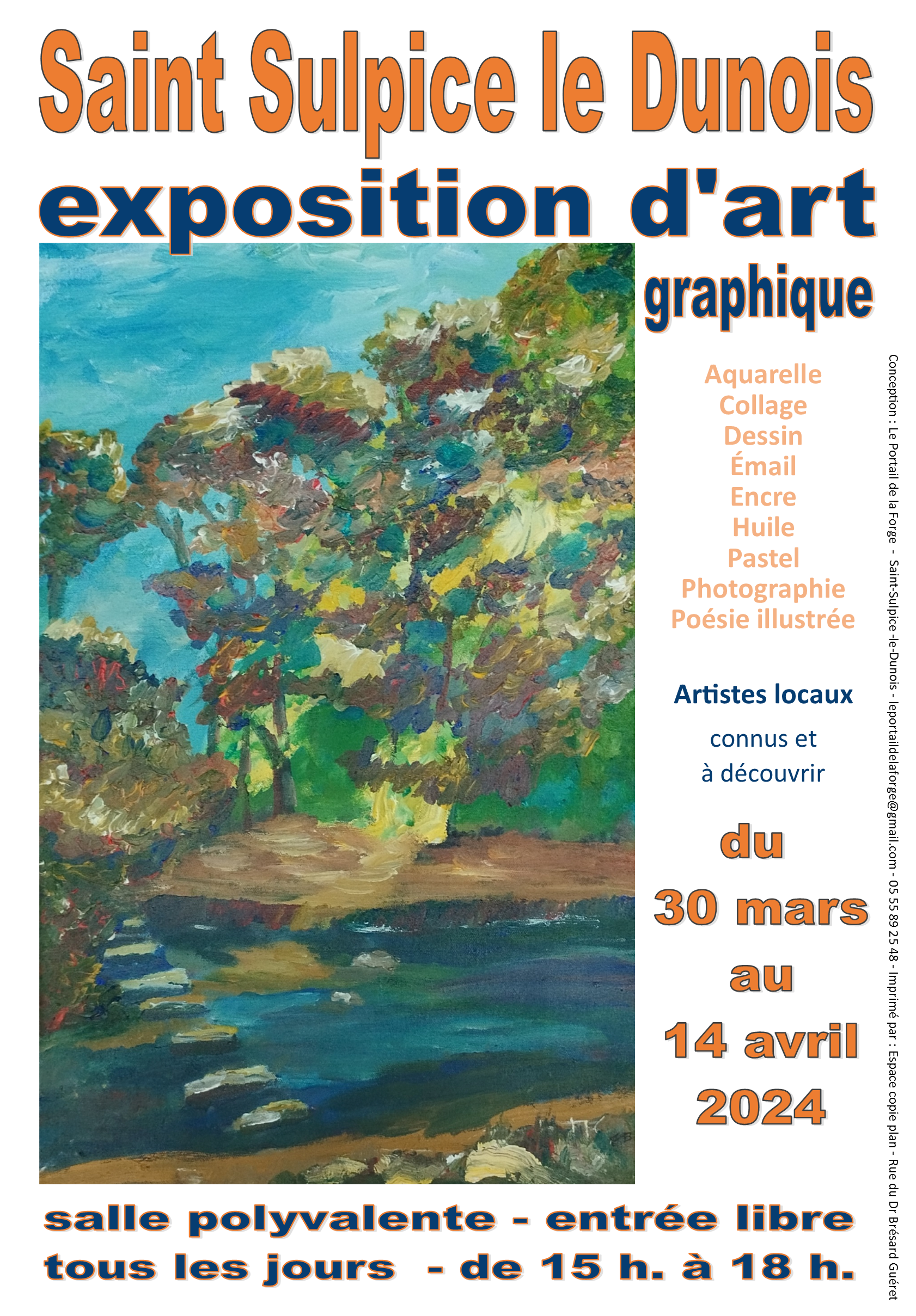 Bien connue pour être la première annuelle des expositions sur le secteur, l’exposition d’art de Saint-Sulpice-le-Dunois ouvrira ses portes au public du samedi 30 mars au dimanche 14 avril 2024.